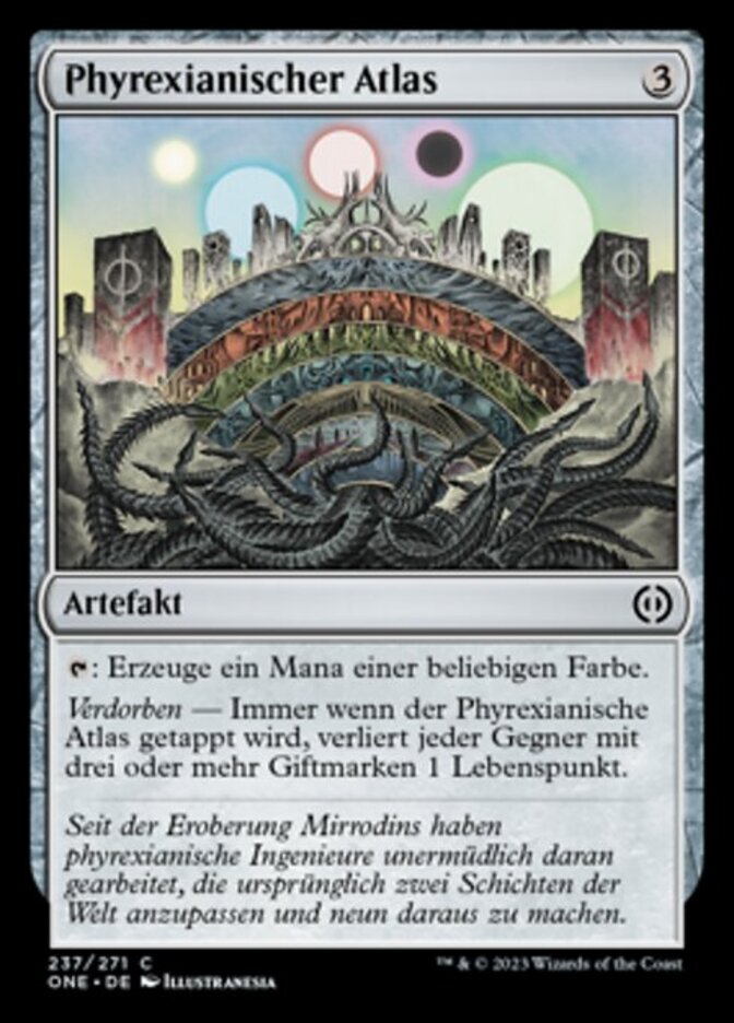| Rules | : Add one mana of any color. Corrupted — Whenever Phyrexian Atlas becomes tapped, each opponent with three or more poison counters loses 1 life. |