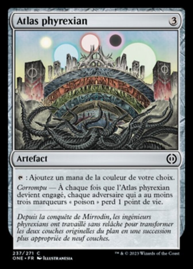 | Rules | : Add one mana of any color. Corrupted — Whenever Phyrexian Atlas becomes tapped, each opponent with three or more poison counters loses 1 life. |