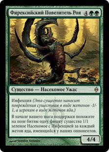 | Rules | Infect (This creature deals damage to creatures in the form of -1/-1 counters and to players in the form of poison counters.) At the beginning of your upkeep, create a 1/1 green Phyrexian Insect creature token with infect for each poison counter your opponents have. |