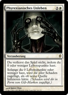 | Rules | You don't lose the game for having 0 or less life. As long as you have 0 or less life, all damage is dealt to you as though its source had infect. (Damage is dealt to you in the form of poison counters.) |