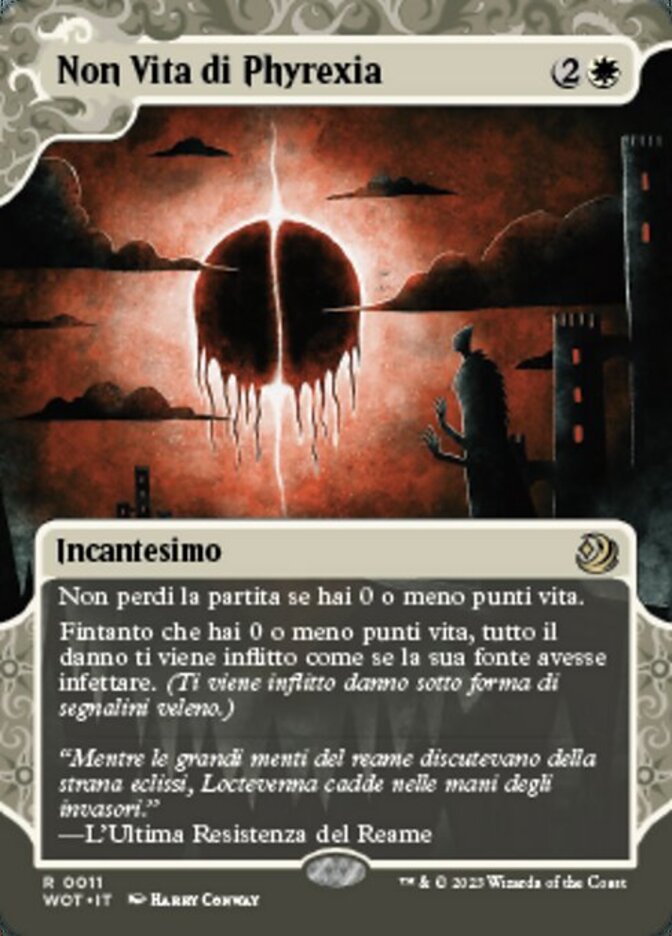 | Rules | You don't lose the game for having 0 or less life. As long as you have 0 or less life, all damage is dealt to you as though its source had infect. (Damage is dealt to you in the form of poison counters.) |