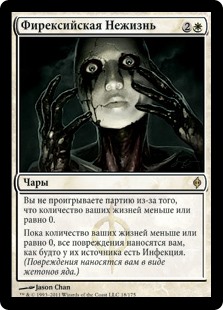 | Rules | You don't lose the game for having 0 or less life. As long as you have 0 or less life, all damage is dealt to you as though its source had infect. (Damage is dealt to you in the form of poison counters.) |
