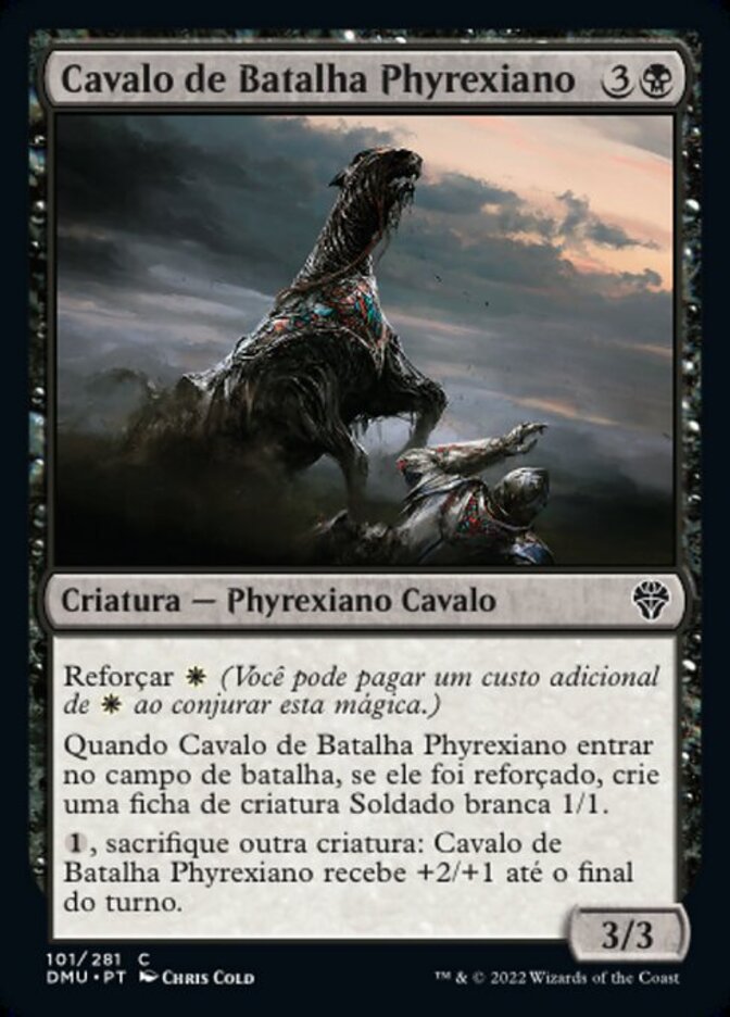 | Rules | Kicker (You may pay an additional as you cast this spell.) When Phyrexian Warhorse enters the battlefield, if it was kicked, create a 1/1 white Soldier creature token. , Sacrifice another creature: Phyrexian Warhorse gets +2/+1 until end of turn. |