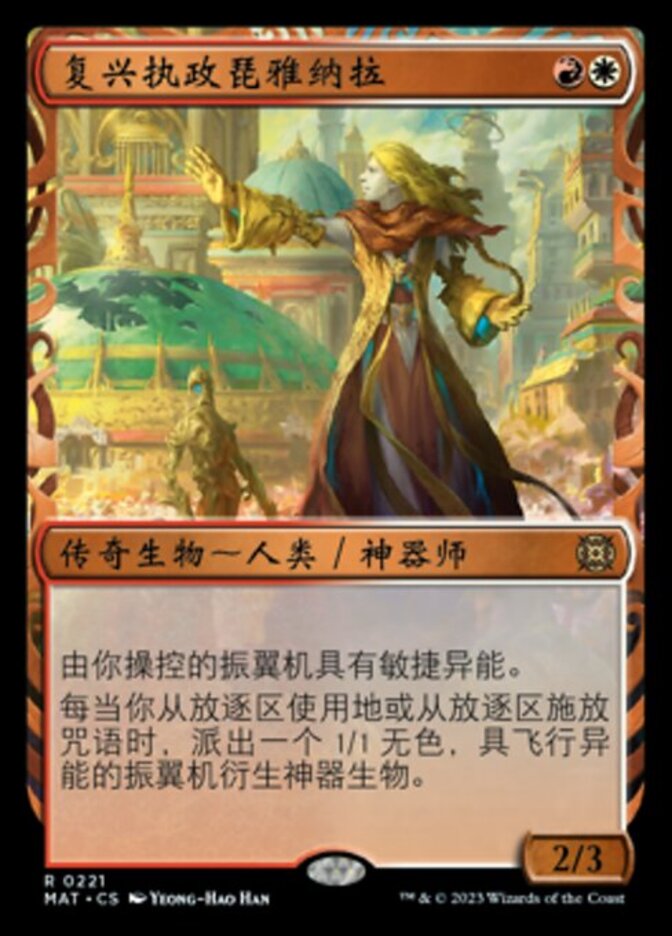 | Rules | Thopters you control have haste. Whenever you play a land from exile or cast a spell from exile, create a 1/1 colorless Thopter artifact creature token with flying. |