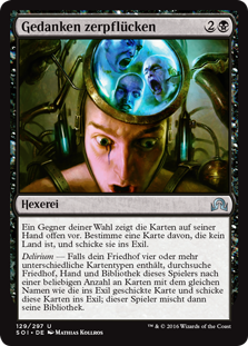 | Rules | Target opponent reveals their hand. You choose a nonland card from it and exile that card. Delirium — If there are four or more card types among cards in your graveyard, search that player's graveyard, hand, and library for any number of cards with the same name as the exiled card, exile those cards, then that player shuffles. |