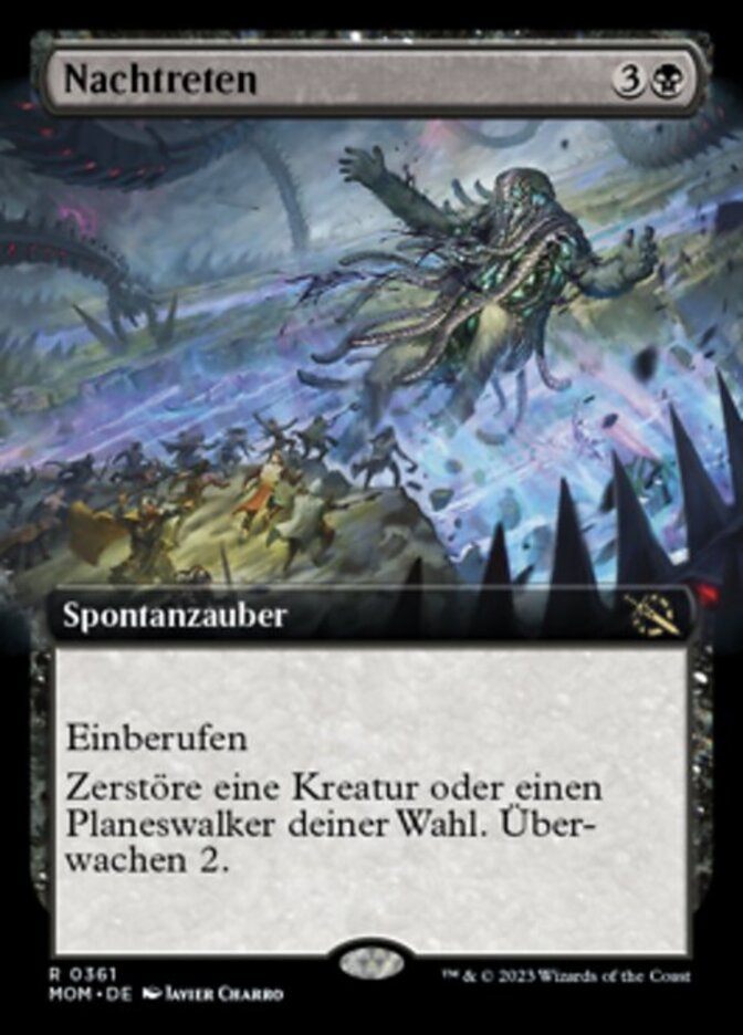| Rules | Convoke (Your creatures can help cast this spell. Each creature you tap while casting this spell pays for or one mana of that creature's color.) Destroy target creature or planeswalker. Surveil 2. (Look at the top two cards of your library, then put any number of them into your graveyard and the rest on top of your library in any order.) |