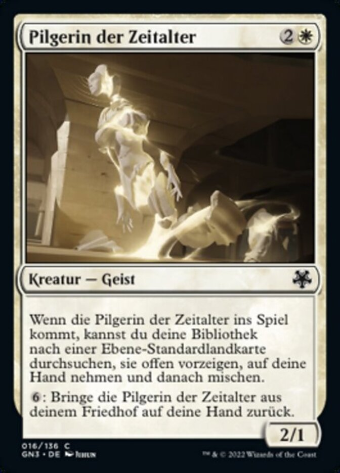 | Rules | When Pilgrim of the Ages enters the battlefield, you may search your library for a basic Plains card, reveal it, put it into your hand, then shuffle. : Return Pilgrim of the Ages from your graveyard to your hand. |