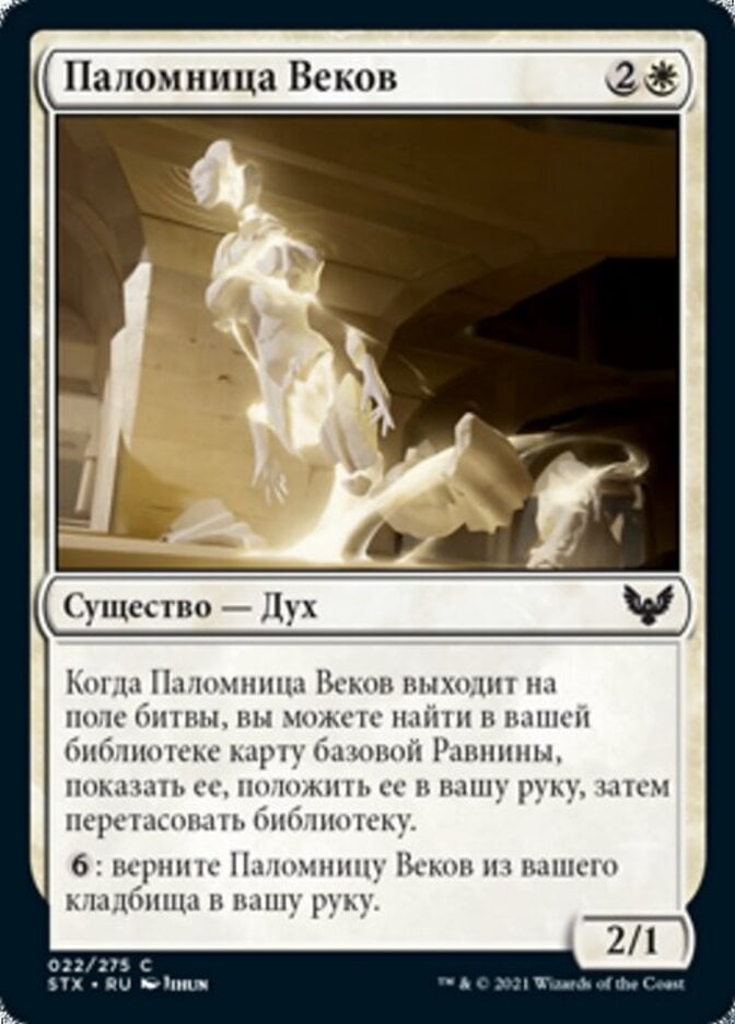 | Rules | When Pilgrim of the Ages enters the battlefield, you may search your library for a basic Plains card, reveal it, put it into your hand, then shuffle. : Return Pilgrim of the Ages from your graveyard to your hand. |