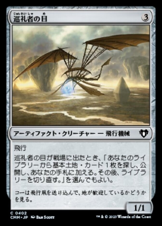 | Rules | Flying When Pilgrim's Eye enters the battlefield, you may search your library for a basic land card, reveal it, put it into your hand, then shuffle. |