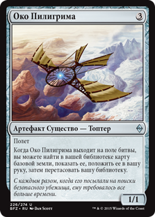 | Rules | Flying When Pilgrim's Eye enters the battlefield, you may search your library for a basic land card, reveal it, put it into your hand, then shuffle. |