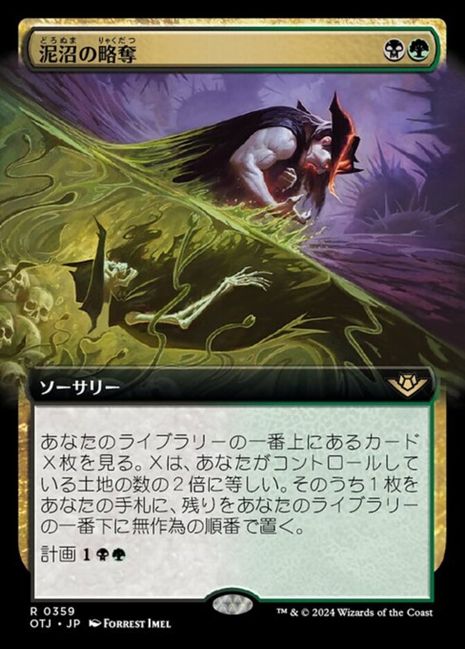 | Rules | Look at the top X cards of your library, where X is twice the number of lands you control. Put one of them into your hand and the rest on the bottom of your library in a random order. Plot (You may pay and exile this card from your hand. Cast it as a sorcery on a later turn without paying its mana cost. Plot only as a sorcery.) |