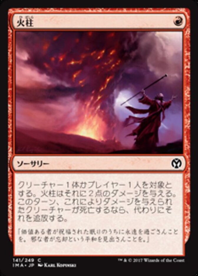 | Rules | Pillar of Flame deals 2 damage to any target. If a creature dealt damage this way would die this turn, exile it instead. |