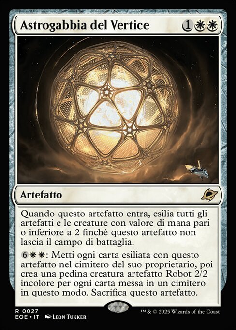 | Rules | When this artifact enters, exile all artifacts and creatures with mana value 2 or less until this artifact leaves the battlefield. : Put each card exiled with this artifact into its owner's graveyard, then create a 2/2 colorless Robot artifact creature token for each card put into a graveyard this way. Sacrifice this artifact. |