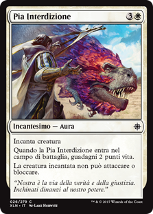 | Rules | Enchant creature When Pious Interdiction enters the battlefield, you gain 2 life. Enchanted creature can't attack or block. |