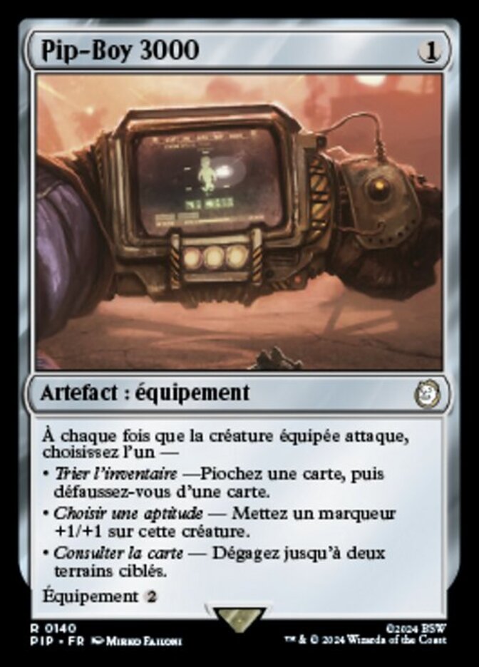 | Rules | Whenever equipped creature attacks, choose one — • Sort Inventory — Draw a card, then discard a card. • Pick a Perk — Put a +1/+1 counter on that creature. • Check Map — Untap up to two target lands. Equip |