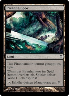 | Rules | Piranha Marsh enters the battlefield tapped. When Piranha Marsh enters the battlefield, target player loses 1 life. : Add . |