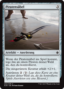 | Rules | When Pirate's Cutlass enters the battlefield, attach it to target Pirate you control. Equipped creature gets +2/+1. Equip (: Attach to target creature you control. Equip only as a sorcery.) |
