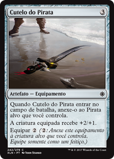 | Rules | When Pirate's Cutlass enters the battlefield, attach it to target Pirate you control. Equipped creature gets +2/+1. Equip (: Attach to target creature you control. Equip only as a sorcery.) |