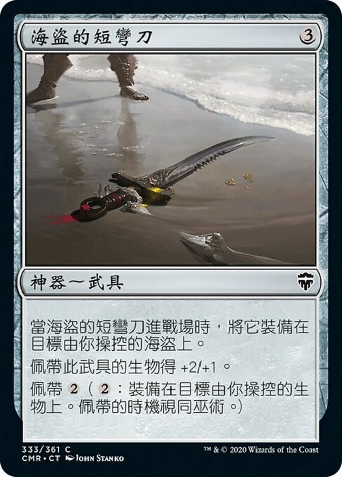 | Rules | When Pirate's Cutlass enters the battlefield, attach it to target Pirate you control. Equipped creature gets +2/+1. Equip (: Attach to target creature you control. Equip only as a sorcery.) |