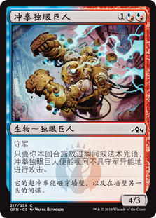 | Rules | Defender As long as you've cast an instant or sorcery spell this turn, Piston-Fist Cyclops can attack as though it didn't have defender. |