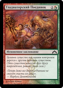 | Rules | Target creature you control fights another target creature. (Each deals damage equal to its power to the other.) |