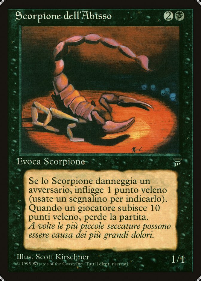| Rules | Whenever Pit Scorpion deals damage to a player, that player gets a poison counter. (A player with ten or more poison counters loses the game.) |