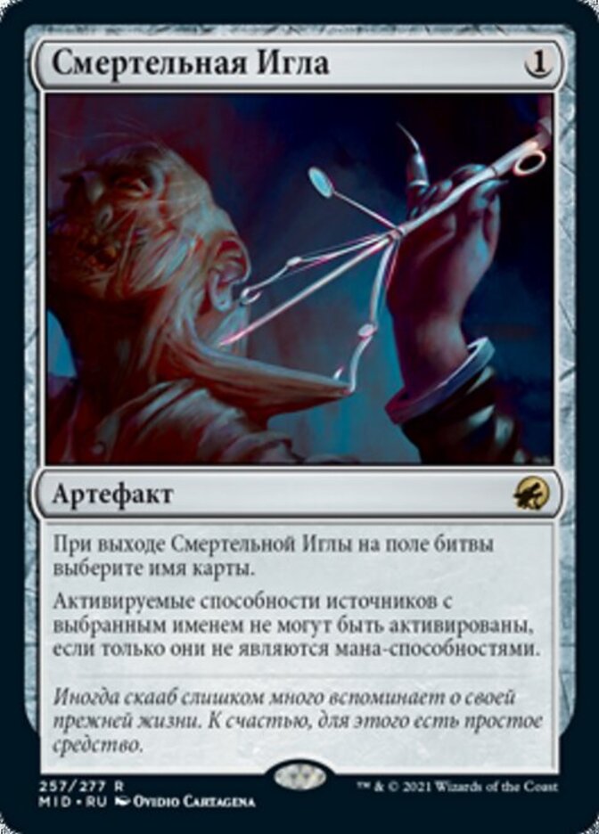 | Rules | As Pithing Needle enters the battlefield, choose a card name. Activated abilities of sources with the chosen name can't be activated unless they're mana abilities. |