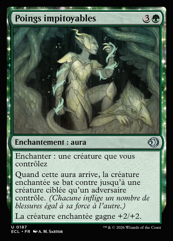 | Rules | Enchant creature you control When this Aura enters, enchanted creature fights up to one target creature an opponent controls. (Each deals damage equal to its power to the other.) Enchanted creature gets +2/+2. |