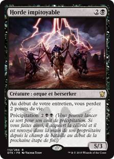 | Rules | At the beginning of your upkeep, you lose 2 life. Dash (You may cast this spell for its dash cost. If you do, it gains haste, and it's returned from the battlefield to its owner's hand at the beginning of the next end step.) |