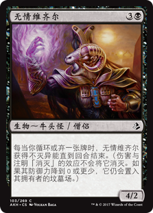 | Rules | Whenever you cycle or discard a card, Pitiless Vizier gains indestructible until end of turn. (Damage and effects that say "destroy" don't destroy it. If its toughness is 0 or less, it's still put into its owner's graveyard.) |