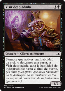 | Rules | Whenever you cycle or discard a card, Pitiless Vizier gains indestructible until end of turn. (Damage and effects that say "destroy" don't destroy it. If its toughness is 0 or less, it's still put into its owner's graveyard.) |