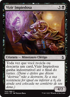 | Rules | Whenever you cycle or discard a card, Pitiless Vizier gains indestructible until end of turn. (Damage and effects that say "destroy" don't destroy it. If its toughness is 0 or less, it's still put into its owner's graveyard.) |