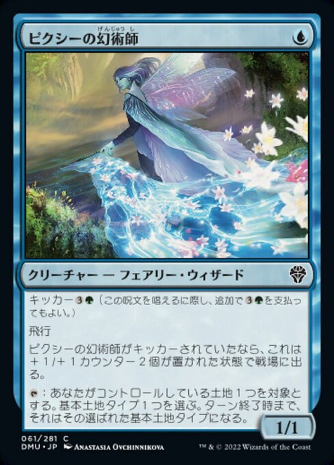 | Rules | Kicker (You may pay an additional as you cast this spell.) Flying If Pixie Illusionist was kicked, it enters the battlefield with two +1/+1 counters on it. : Target land you control becomes the basic land type of your choice until end of turn. |