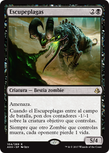 | Rules | Menace When Plague Belcher enters the battlefield, put two -1/-1 counters on target creature you control. Whenever another Zombie you control dies, each opponent loses 1 life. |