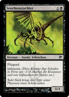 | Rules | Flying Infect (This creature deals damage to creatures in the form of -1/-1 counters and to players in the form of poison counters.) |