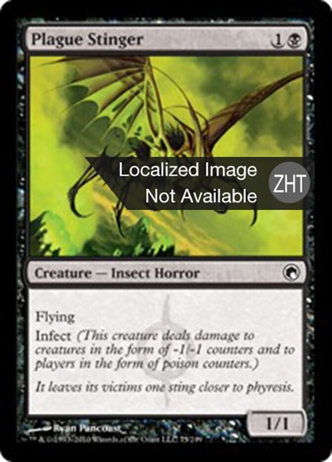 | Rules | Flying Infect (This creature deals damage to creatures in the form of -1/-1 counters and to players in the form of poison counters.) |