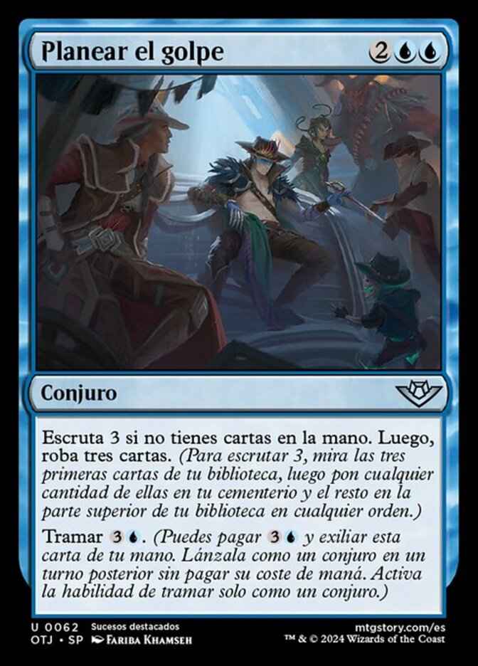 | Rules | Surveil 3 if you have no cards in hand. Then draw three cards. (To surveil 3, look at the top three cards of your library, then put any number of them into your graveyard and the rest on top of your library in any order.) Plot (You may pay and exile this card from your hand. Cast it as a sorcery on a later turn without paying its mana cost. Plot only as a sorcery.) |