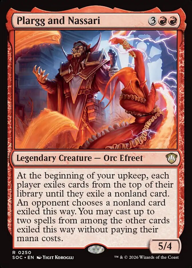 | Rules | At the beginning of your upkeep, each player exiles cards from the top of their library until they exile a nonland card. An opponent chooses a nonland card exiled this way. You may cast up to two spells from among the other cards exiled this way without paying their mana costs. |