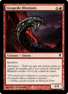Landfall — Whenever a land enters the battlefield under your control, Plated Geopede gets +2/+2 until end of turn.