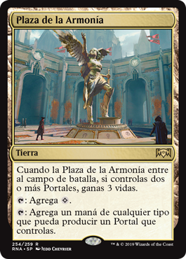 | Rules | When Plaza of Harmony enters the battlefield, if you control two or more Gates, you gain 3 life. : Add . : Add one mana of any type that a Gate you control could produce. |