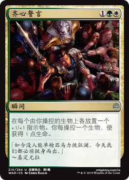 | Rules | Put a +1/+1 counter on each creature you control. You gain 1 life for each creature you control. |