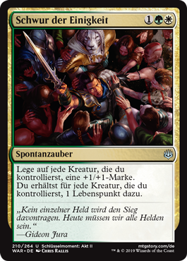 | Rules | Put a +1/+1 counter on each creature you control. You gain 1 life for each creature you control. |