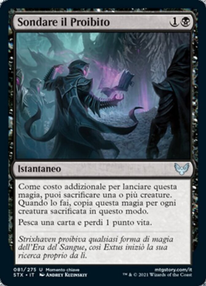 | Rules | As an additional cost to cast this spell, you may sacrifice one or more creatures. When you do, copy this spell for each creature sacrificed this way. You draw a card and you lose 1 life. |