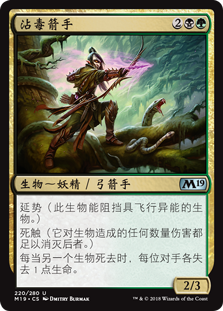 | Rules | Reach (This creature can block creatures with flying.) Deathtouch (Any amount of damage this deals to a creature is enough to destroy it.) Whenever another creature dies, each opponent loses 1 life. |