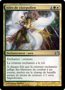 | Rules | Enchant creature Enchanted creature has flying. Whenever enchanted creature deals combat damage to a player, create that many 1/1 green Saproling creature tokens. |