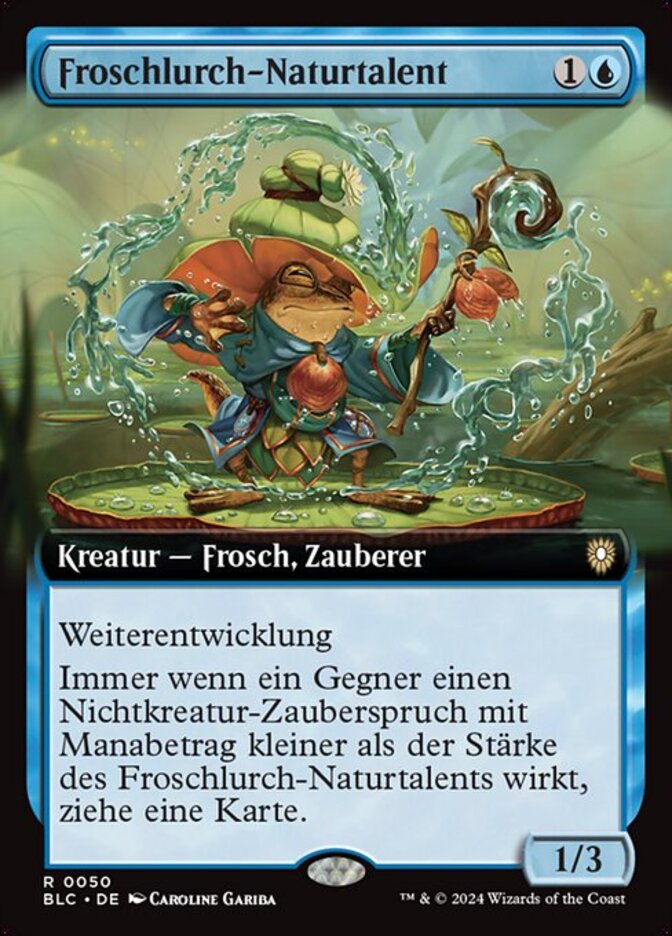 | Rules | Evolve (Whenever a creature you control enters, if that creature has greater power or toughness than this creature, put a +1/+1 counter on this creature.) Whenever an opponent casts a noncreature spell with mana value less than Pollywog Prodigy's power, draw a card. |