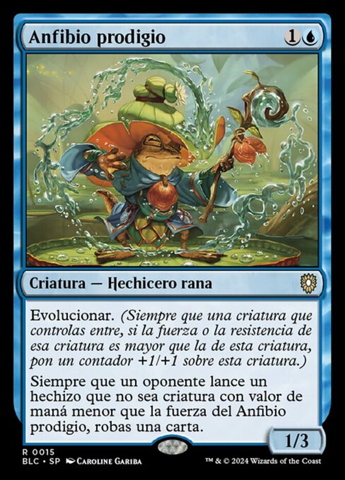 | Rules | Evolve (Whenever a creature you control enters, if that creature has greater power or toughness than this creature, put a +1/+1 counter on this creature.) Whenever an opponent casts a noncreature spell with mana value less than Pollywog Prodigy's power, draw a card. |