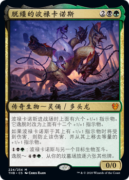 | Rules | Polukranos enters the battlefield with six +1/+1 counters on it. It escapes with twelve +1/+1 counters on it instead. If damage would be dealt to Polukranos while it has a +1/+1 counter on it, prevent that damage and remove that many +1/+1 counters from it. : Polukranos fights another target creature. Escape—, Exile six other cards from your graveyard. |