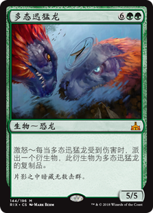 | Rules | Enrage — Whenever Polyraptor is dealt damage, create a token that's a copy of Polyraptor. |