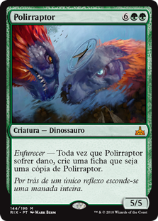 | Rules | Enrage — Whenever Polyraptor is dealt damage, create a token that's a copy of Polyraptor. |